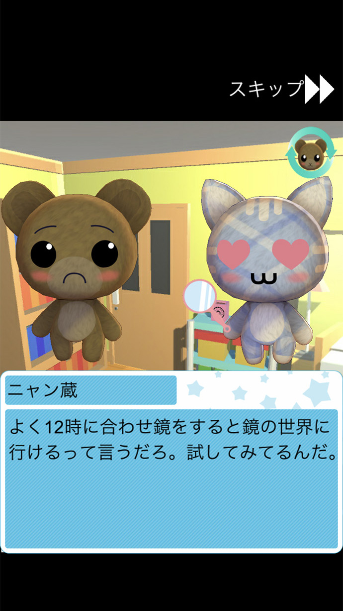 しかも外の世界で「クマ吉」くんが鏡を割れちゃって、ニャン蔵くんは外に出られなくなったよ!