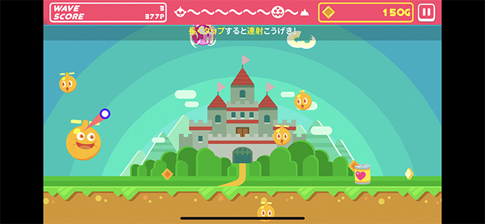 左右をタップするだけの簡単操作ながら、このように攻撃を使い分けられるのがこのゲームの奥深いところだと思うよ!