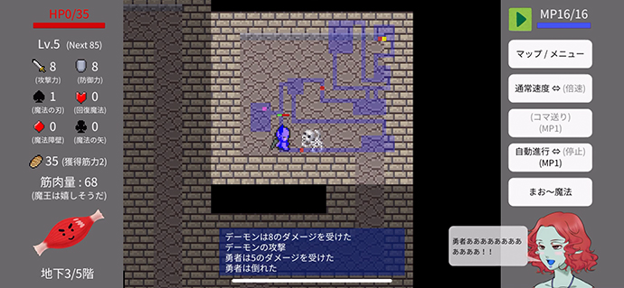 パーティーが探索から帰ってきたら、探索中の戦闘シーンを見てデッキを変更したり、持ち帰ったカードを合成したりして、パーティーを強化するんだね?