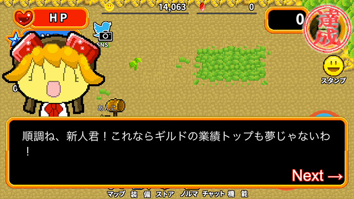 “ギルドのノルマ” は、画面右上の丸窓に映るモンスターを倒していけばいいんだね?