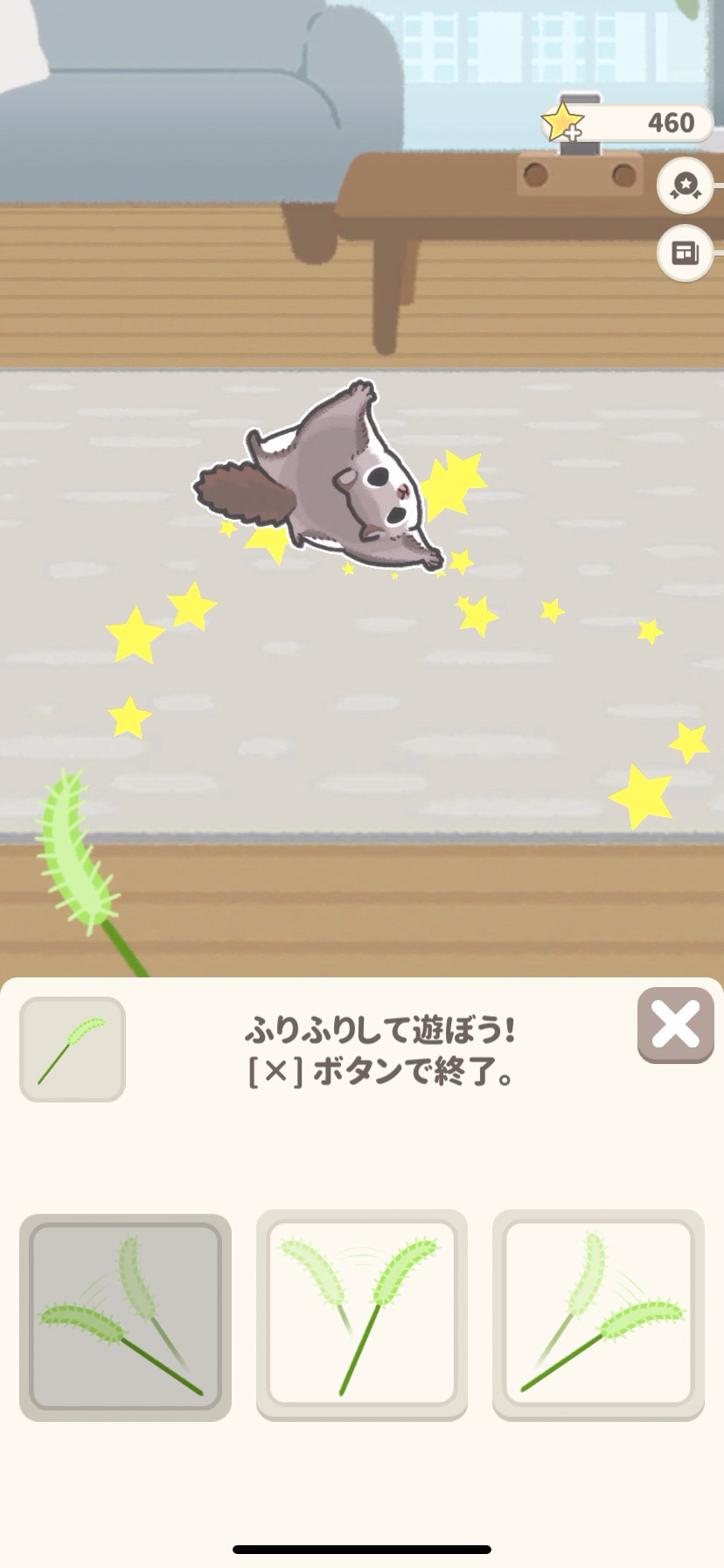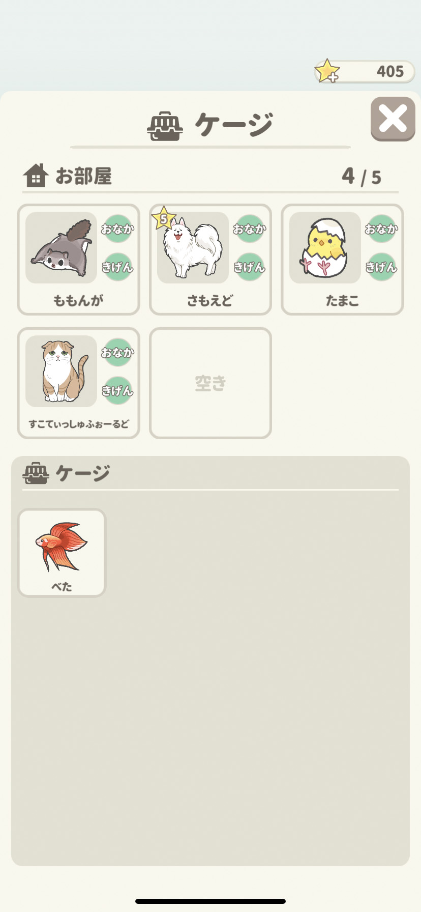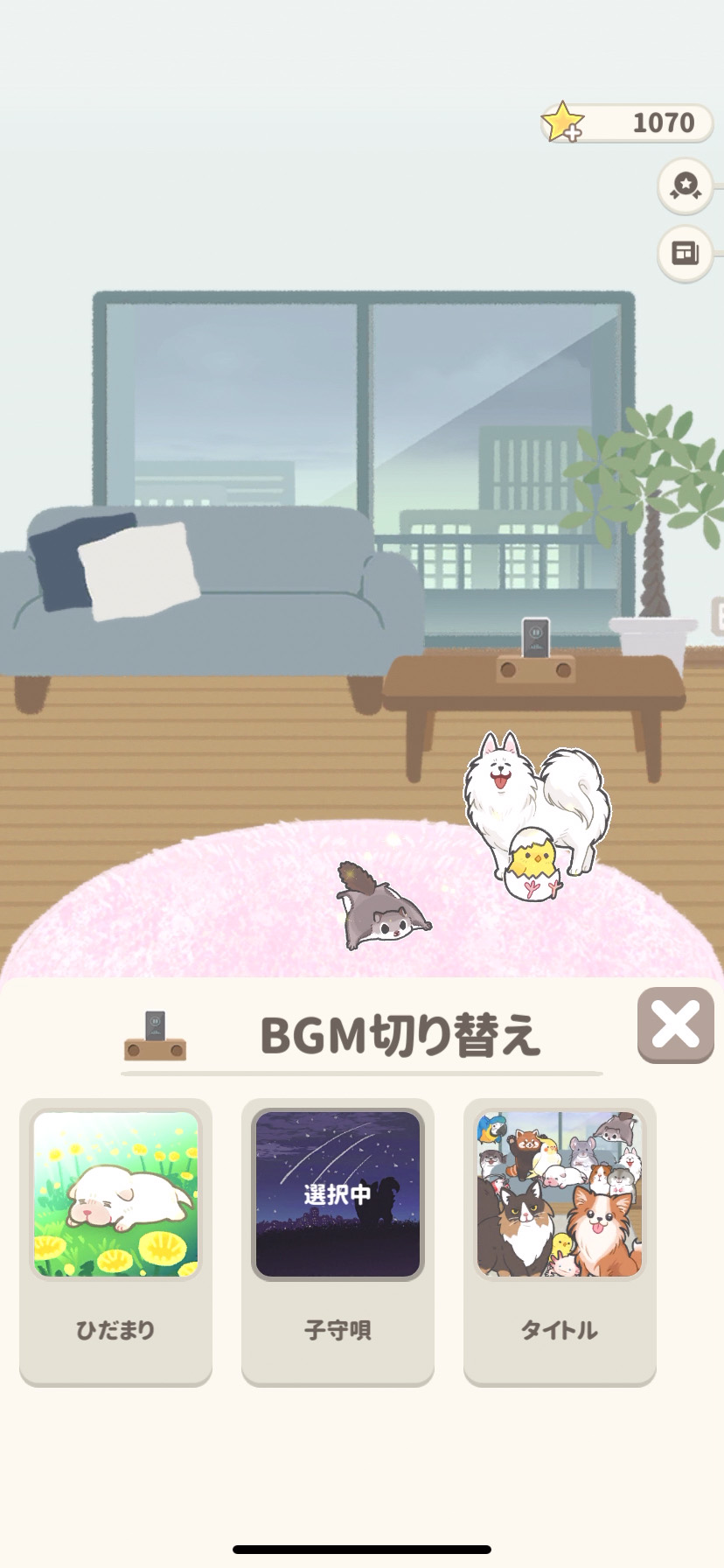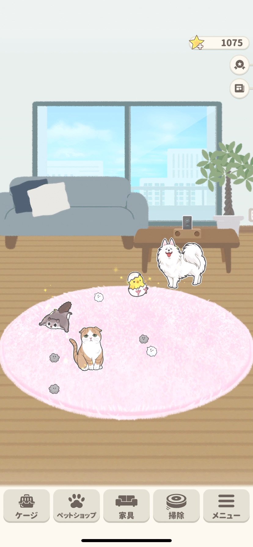 お世話するともらえるポイントで、新しい動物をお迎えしたり、お部屋の模様替えができるんだね。