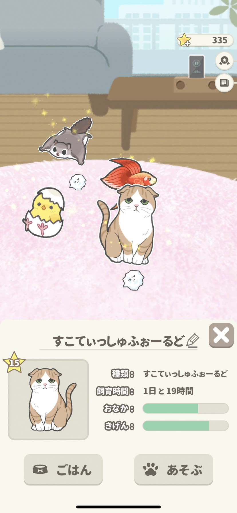 種類の違う動物同士や、たくさんの動物を飼うことは現実だとなかなかできないけど、この育成なら好きな動物たちと過ごせるよ〜