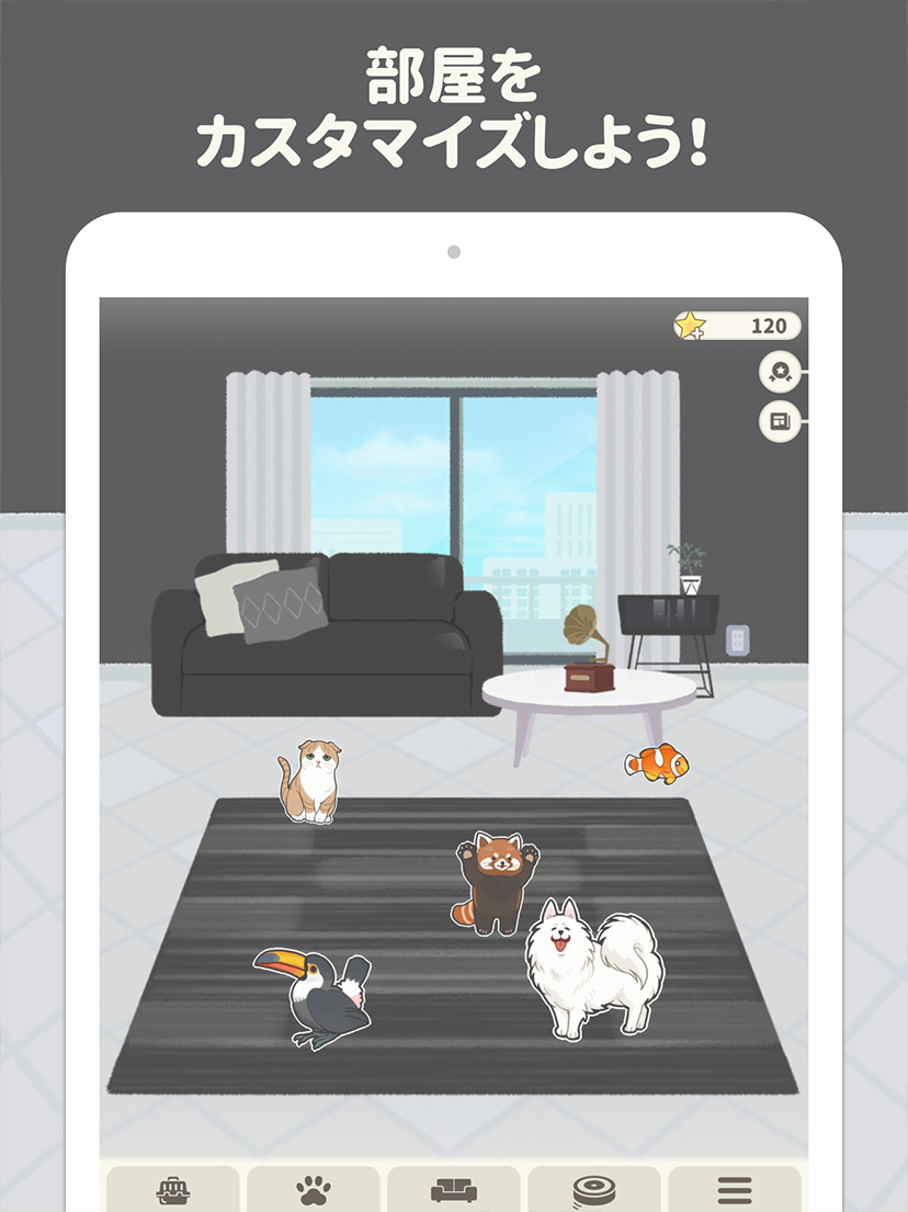 かわいい動物たちと一緒にほのぼのライフ!5匹まで一緒に育てられて、お部屋も好みに模様替えできるよ〜!とっても和める楽しい育成ゲーム「あにまるーむ – 癒しの育成ゲーム」無料♪