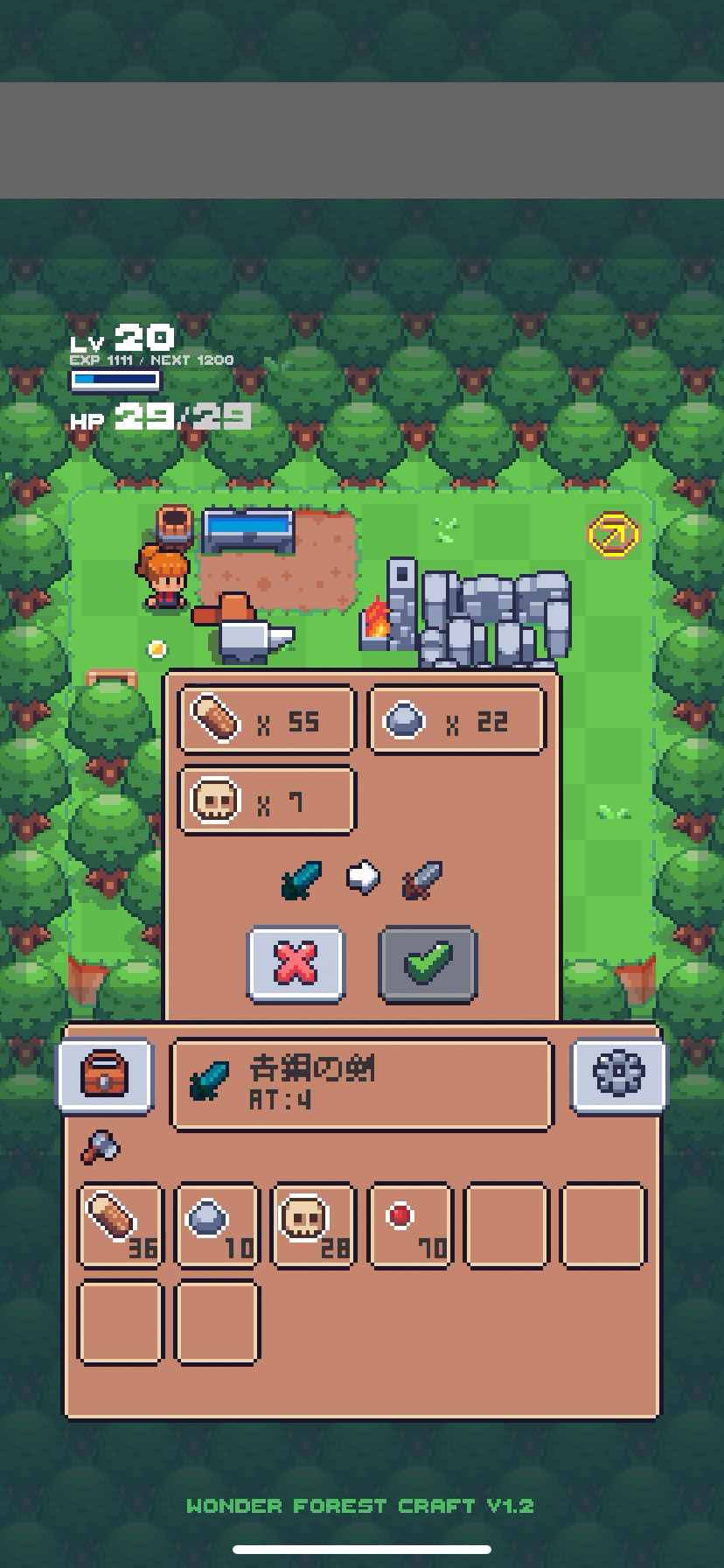 「迷いの森」に閉じ込められた主人公が、集めた素材で武器をクラフトして、森の探索を進めていくよ〜