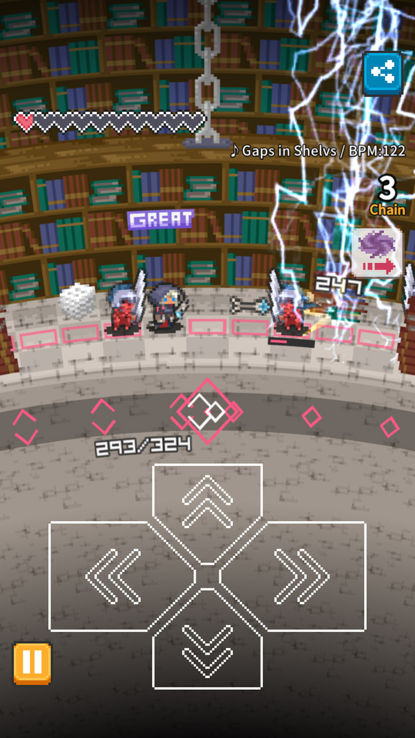 BGMのビートに合わせて矢印キーをタップすることで移動や攻撃ができるよ。
