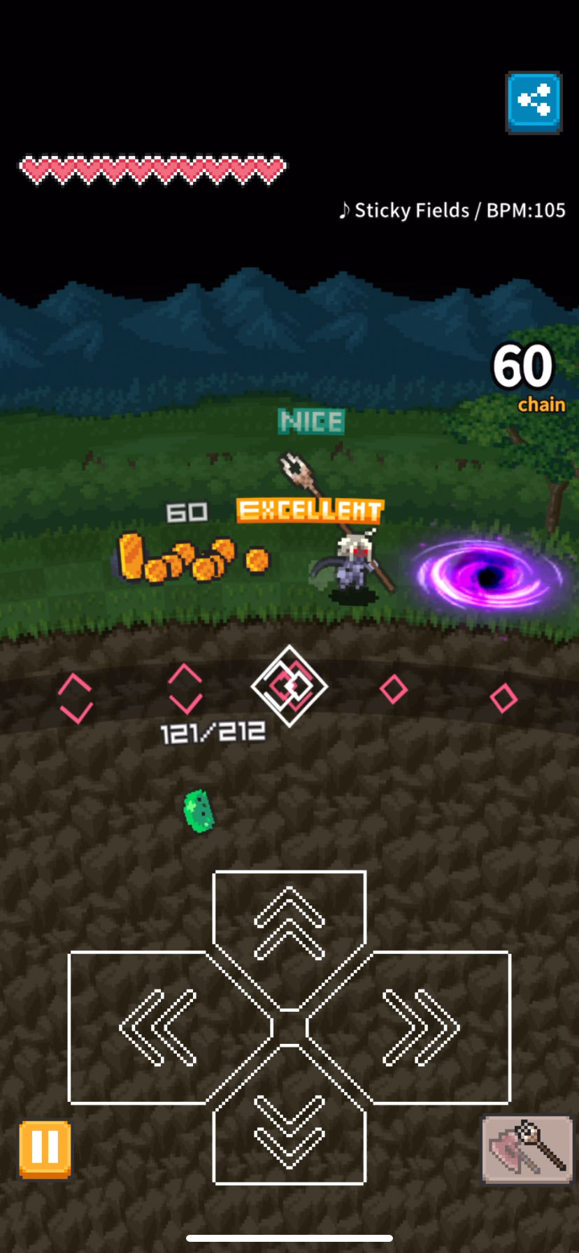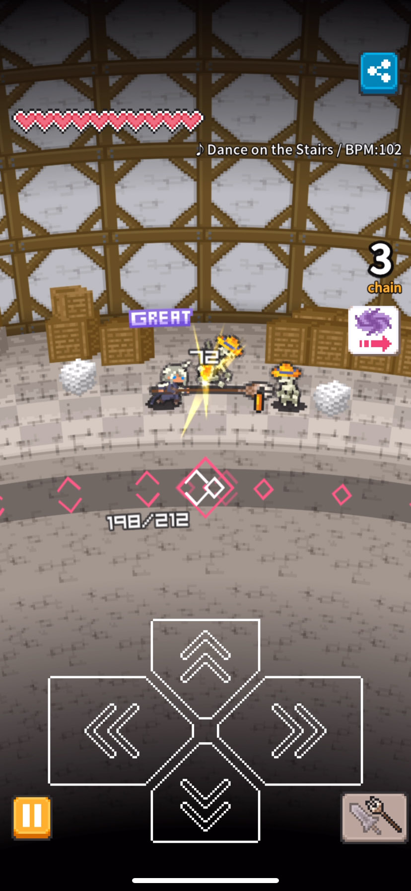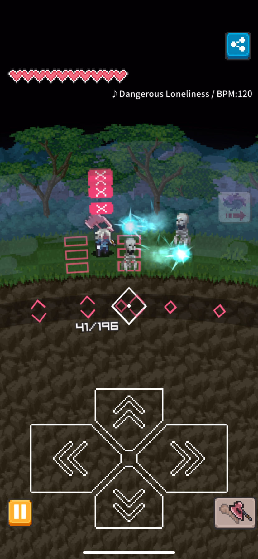 敵もビートに合わせて行動するから、それを回避しながら攻撃するよ〜