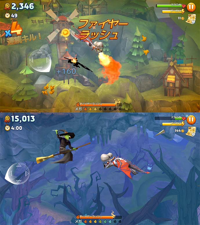 操作はタップで、斜め方向にも移動や攻撃ができるよ。