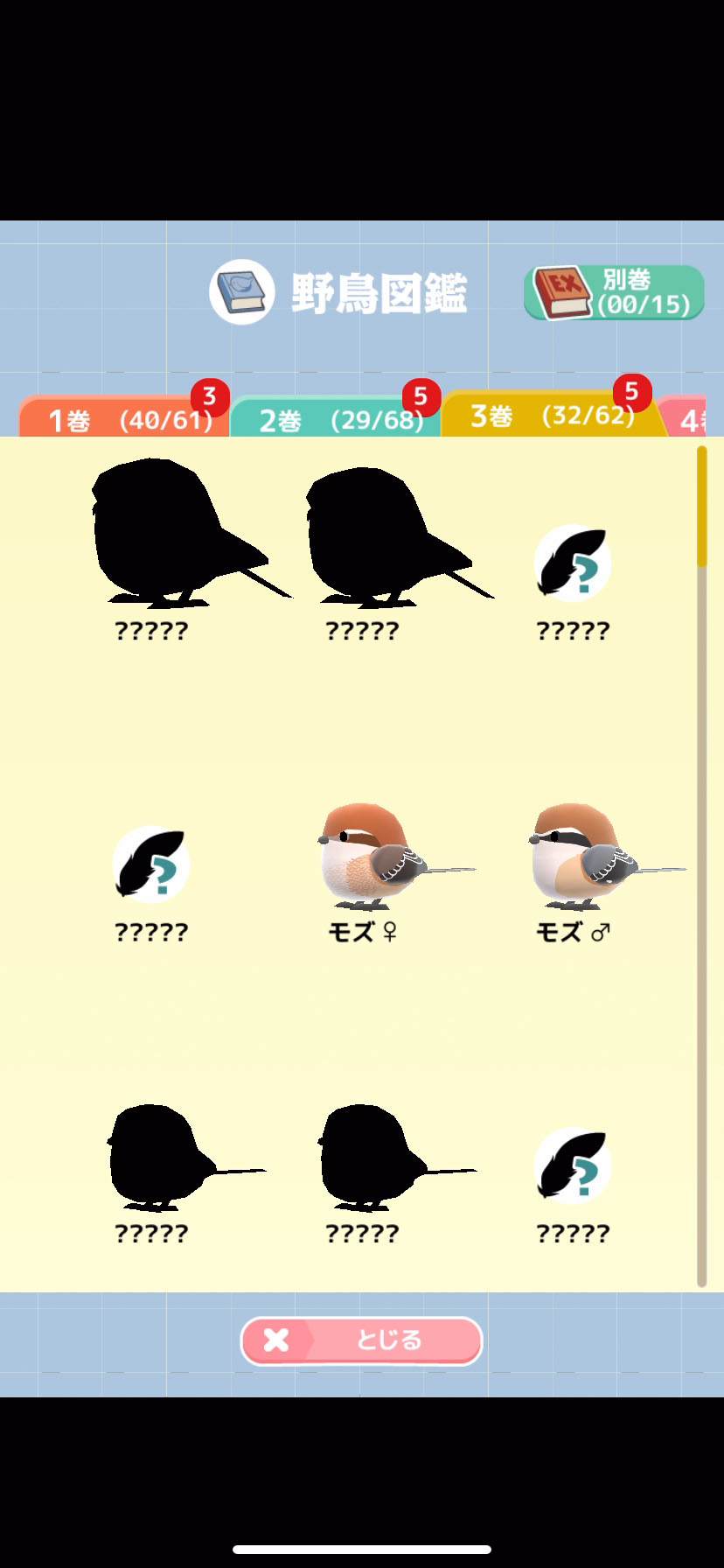 鳥の種類だけでなく、行動も図鑑に載るよ。
