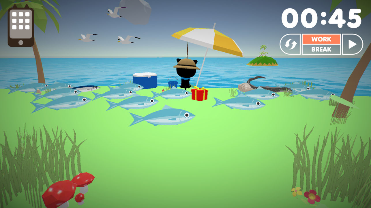 島にはいろんな仲間がいて、お魚をあげたり、広場を作ったりして物語を進めていくようだよ~