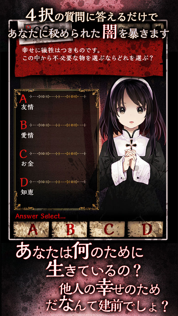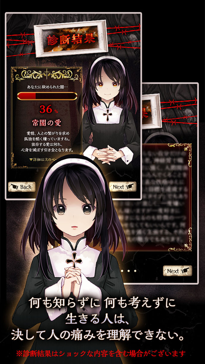 診断テーマをイメージした可愛い女の子や、BGMが凝っていて、ダークな雰囲気を盛り上げてくれるね。
