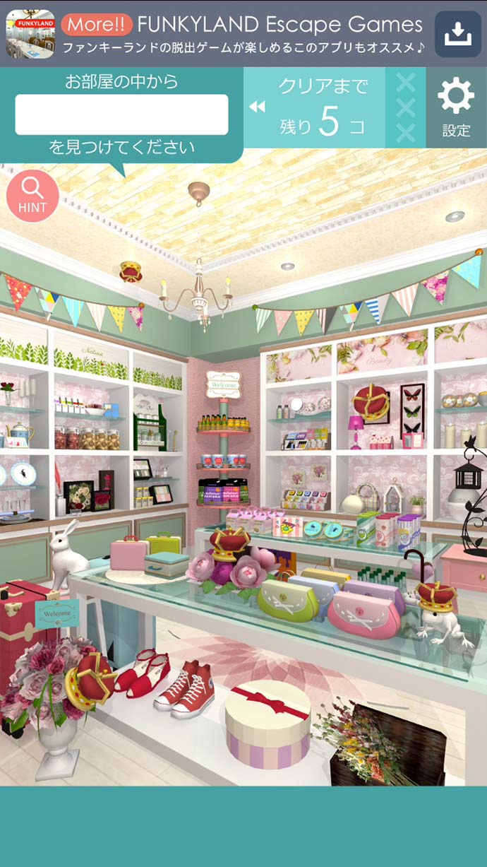 「雑貨屋さん」「スイーツショップ」「キッチン」他にも、全部で6部屋の探し物ができるんだね!