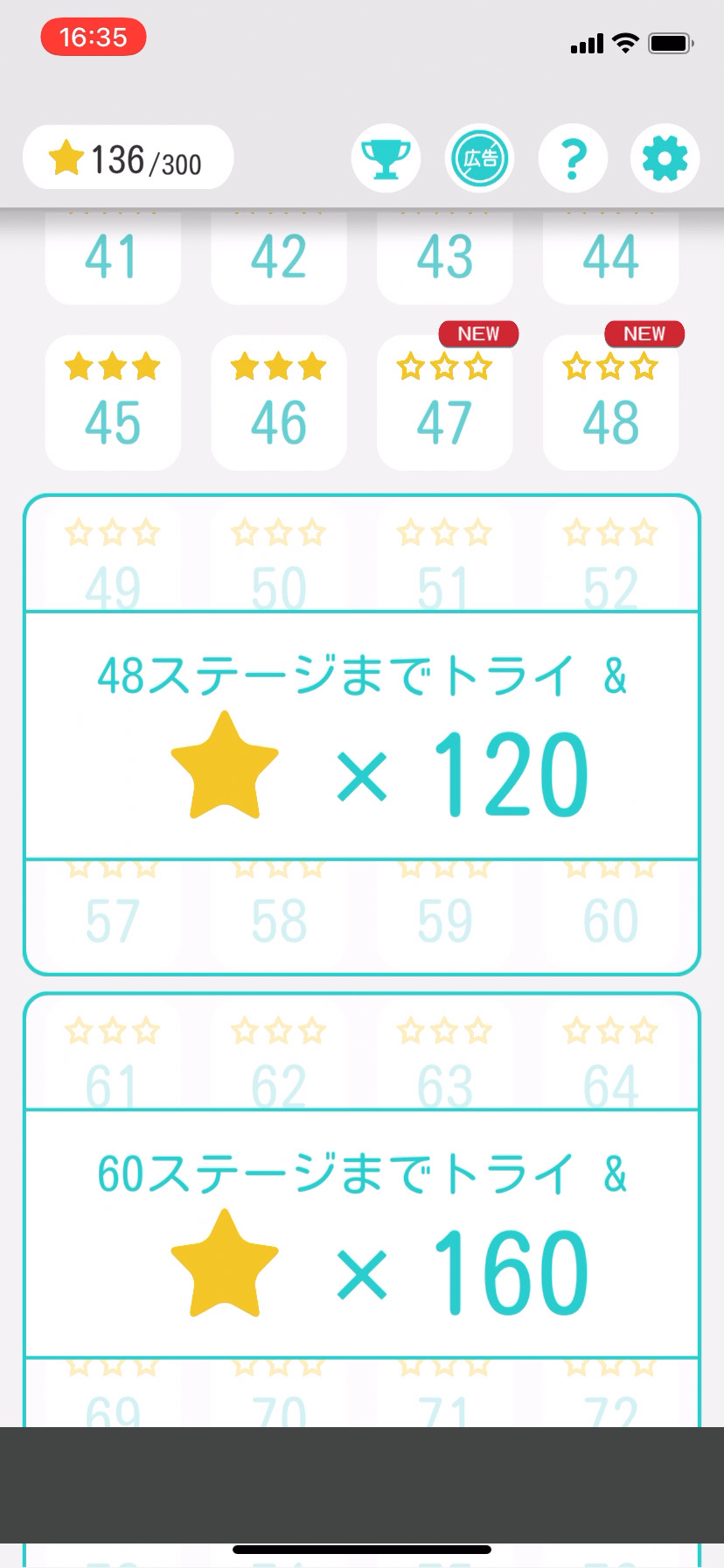 一定以上の☆をゲットすることで、ロックされているステージが解放されるよ。