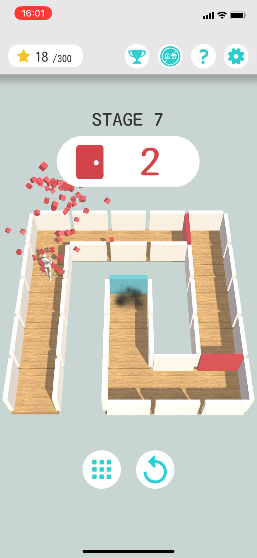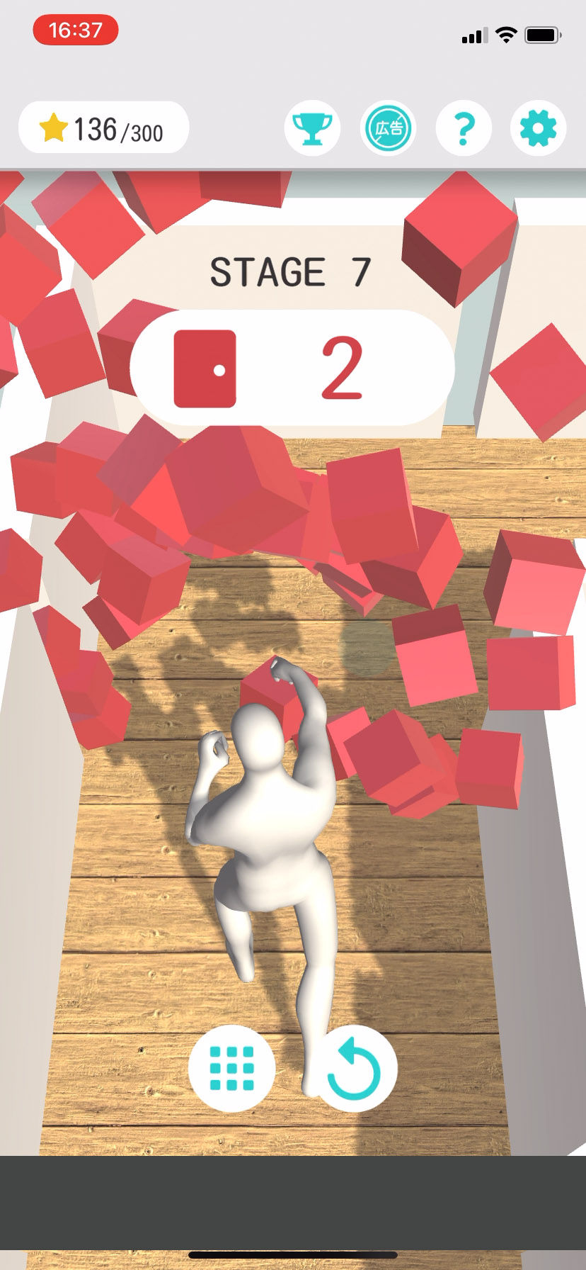 壁やガラスをタップすると、「白い人」がパンチで粉砕してくれるね!