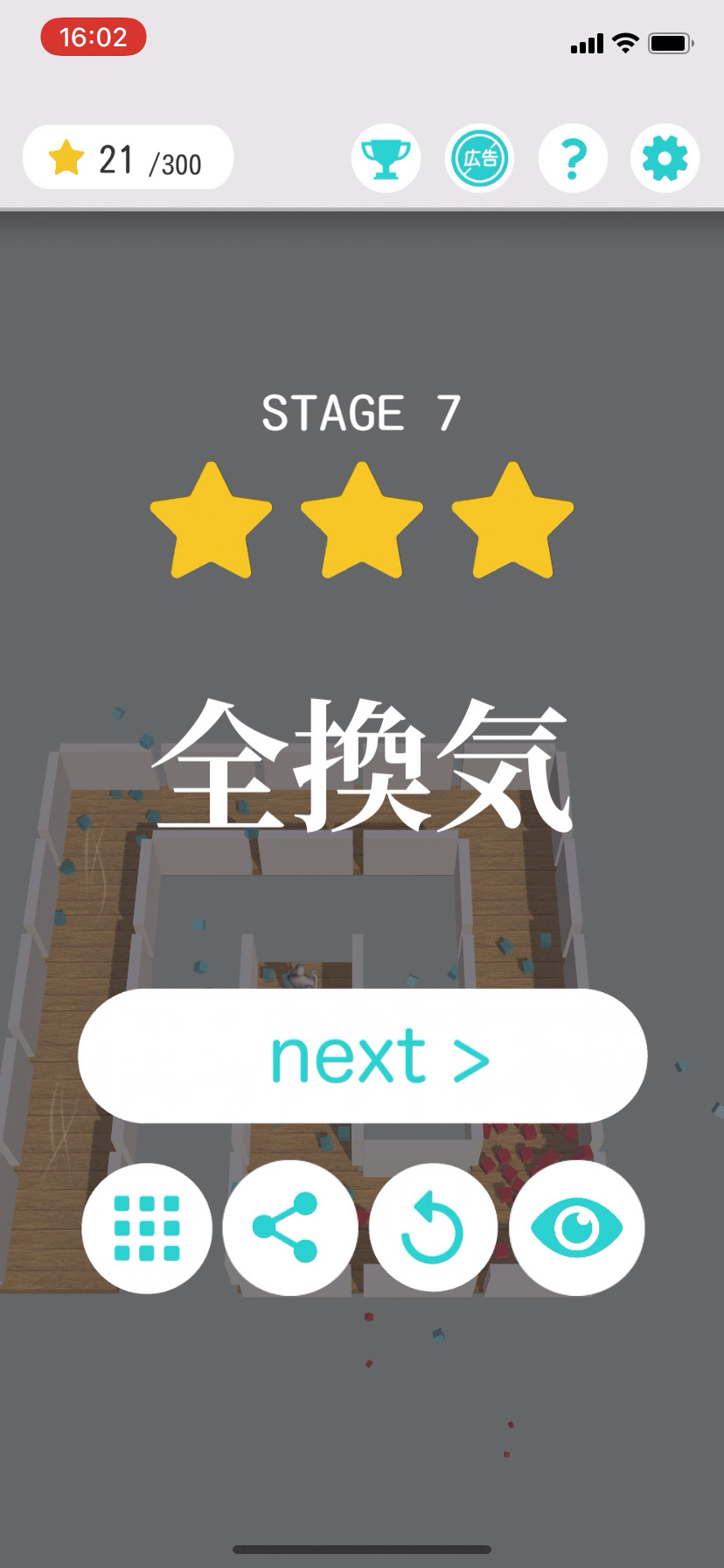 室内換気のためにジャマな壁はパンチで粉砕!ギミックを使って空気の通り道を作る、ユニークでとっても楽しい脳トレパズル「超換気」無料♪