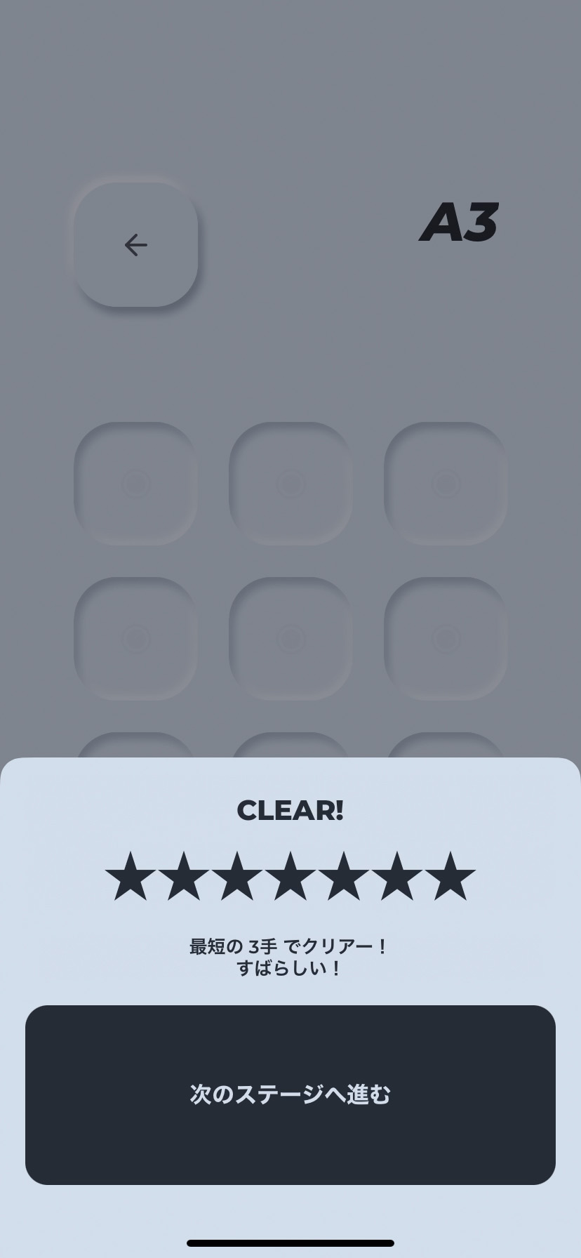 最短手数でクリアすると★7評価になるよ。