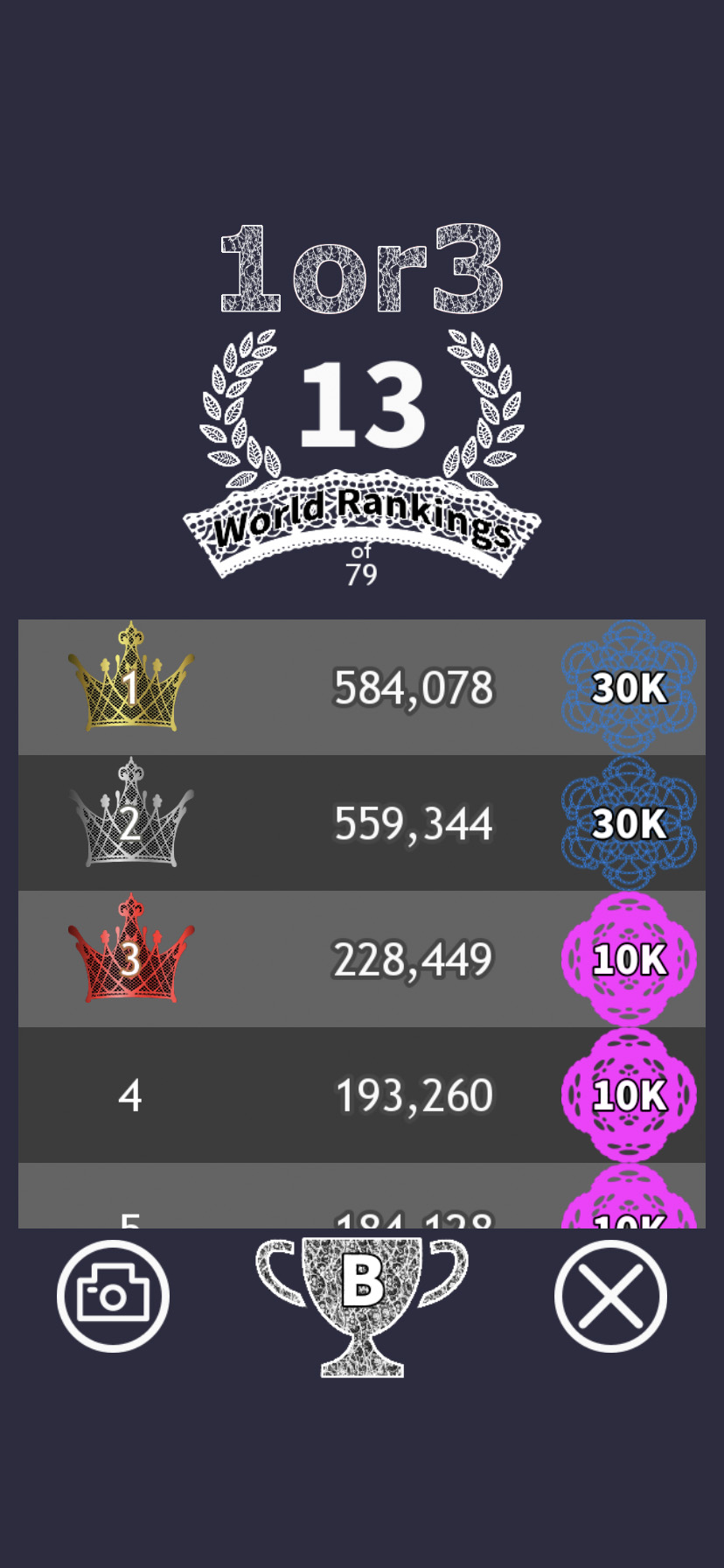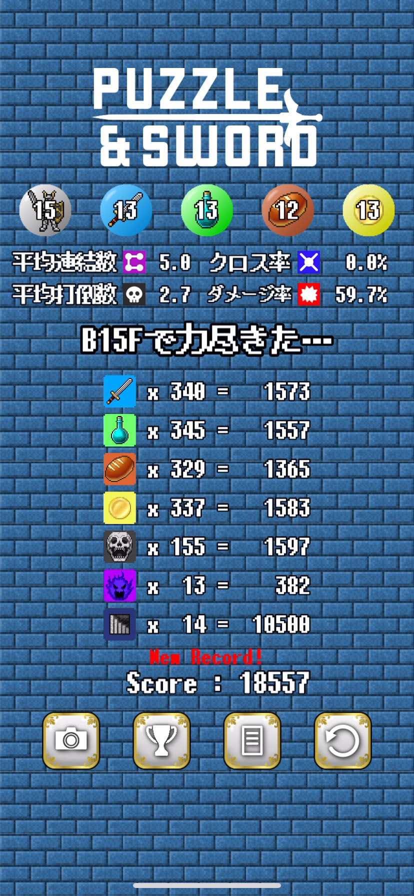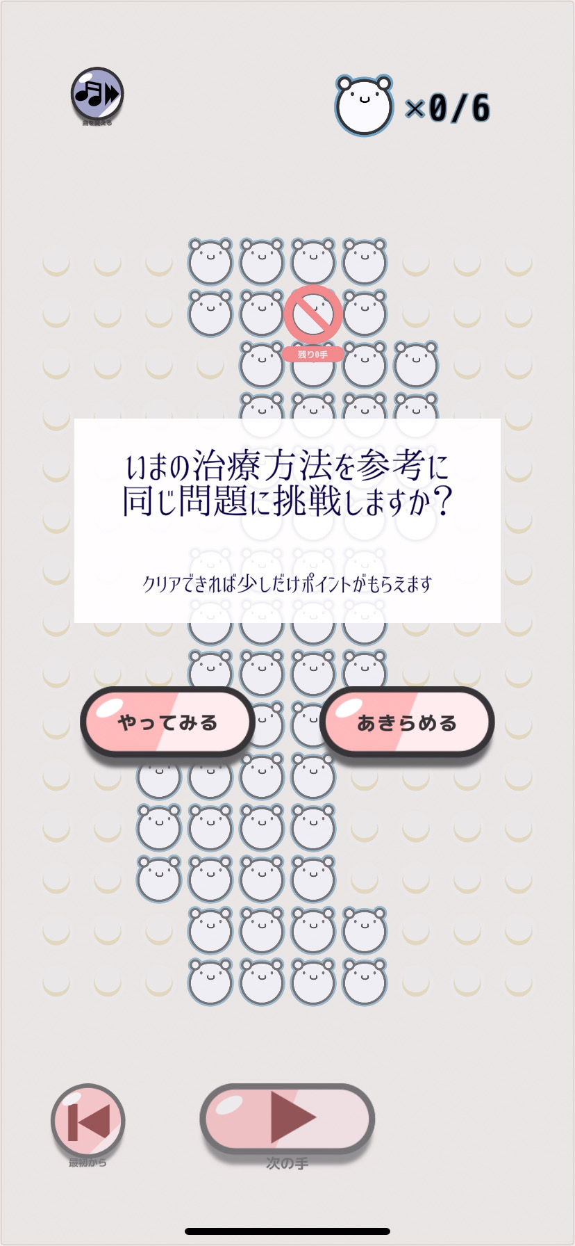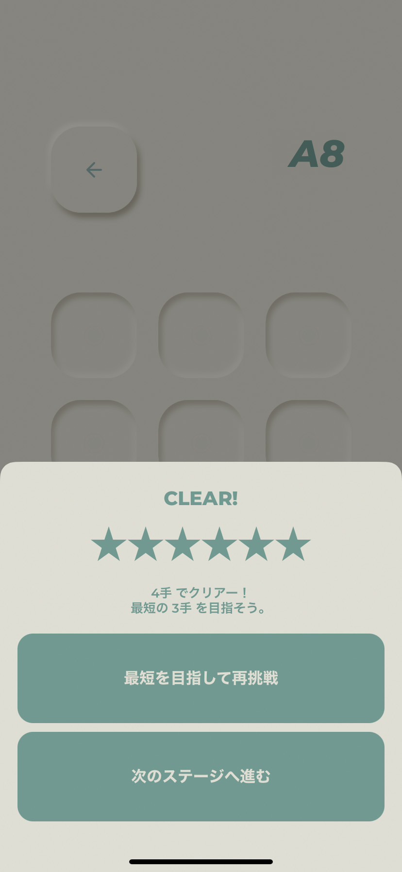 クリアすると手数に応じて、最高★6評価になるよ。