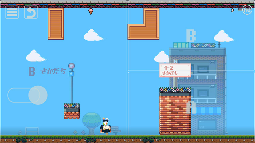 “さかだち” で世界が反転させて障害を乗り越える、楽しい重力反転パズルアクションゲーム。