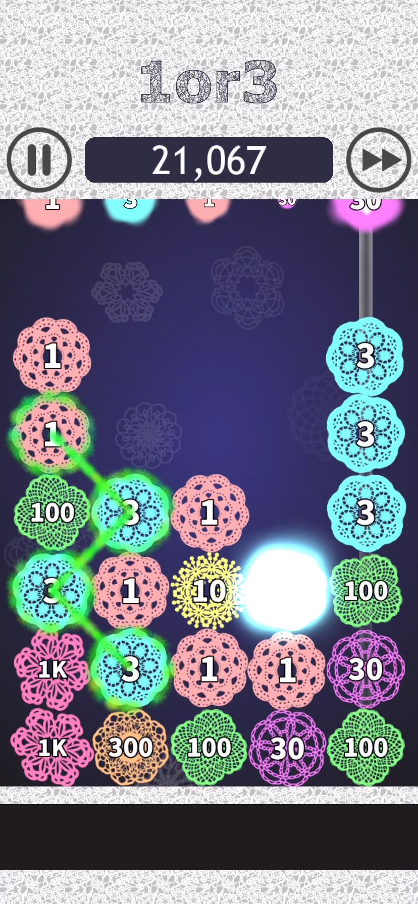 途中から新たなギミックが登場して難易度が上がり、ちょっと悩んで解けるくらいになるよ。