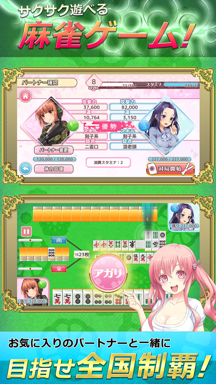 美少女をパートナーにして、対局で全国制覇を目指す、麻雀ゲームだよ〜