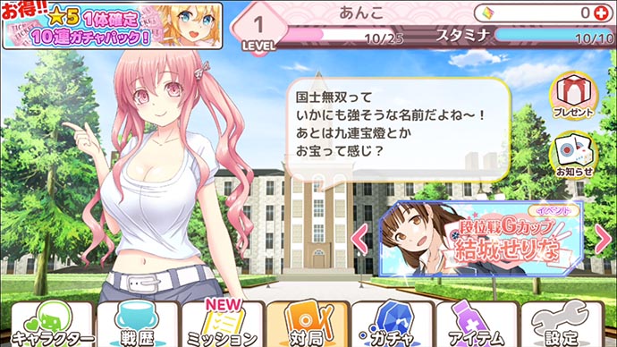 強いキャラは「ガチャ」か、「イベント」で手に入れるよ。