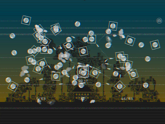 黒いシルエットのうえに白い敵が次々と降ってくる、