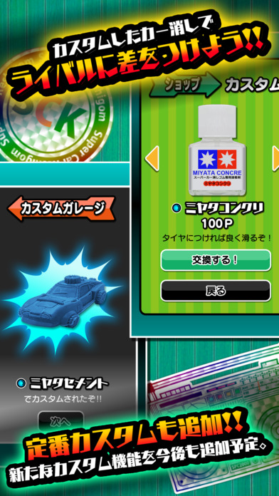 例えば、お気に入りの「カー消し」のタイヤに接着剤を塗って、滑りやすくするとか、当時の裏技を使って性能アップできるよ。