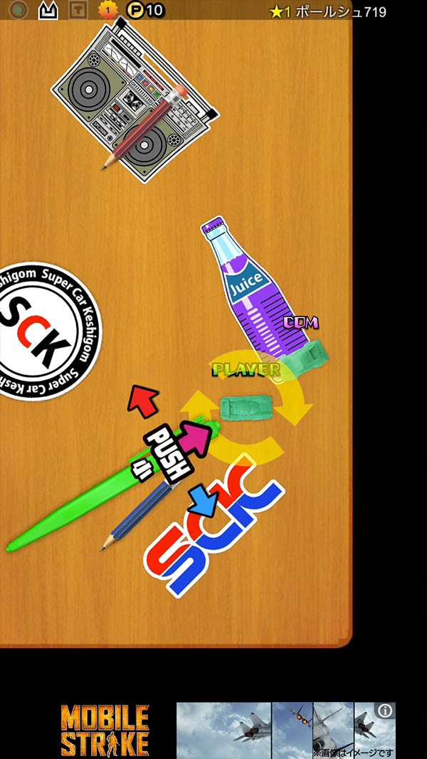 カー消しが相手に当たると”はじき戻る”「リターンペン」とか、回転しながら飛ぶ「ローリングペン」など、対戦相手の特性や、自分の戦い方によって、ボールペンを替えることあるよ〜