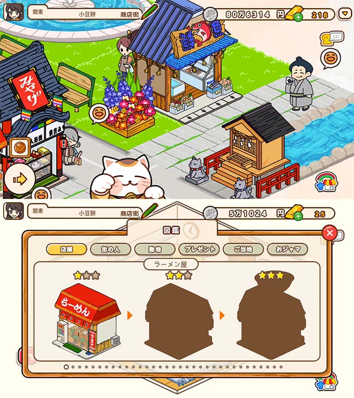 自由にレイアウトできるから、自分の好きなように商店街を作れる、楽しい箱庭ゲーム。