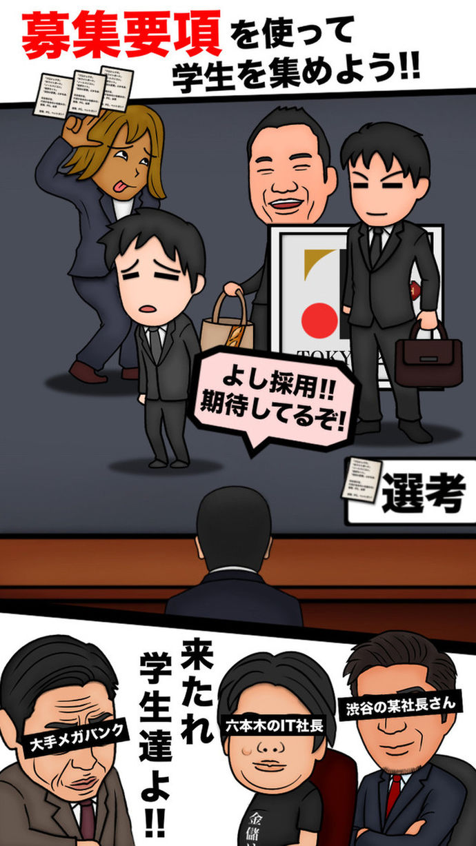 就活の裏側を知る人事屋になろう!有名社長の本音も、ブラックなキーワードも飛び出すよ!楽しい放置系の人材紹介会社経営ゲーム「俺の就活」無料♪