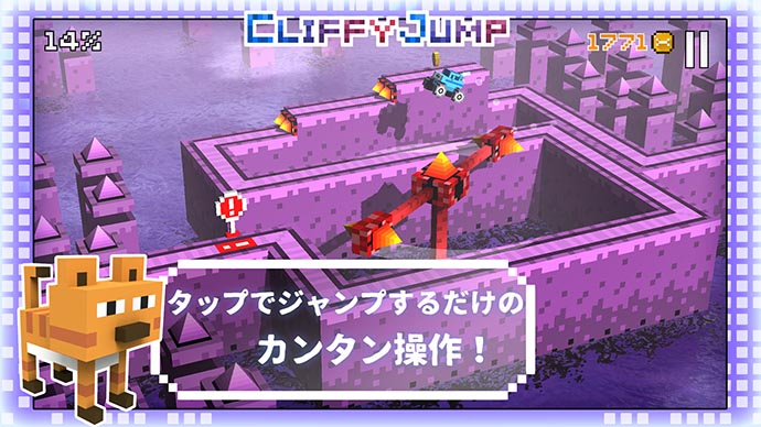 コース上を自走するので、プレイヤーは段差や障害をタップジャンプで飛び越えるだけだよ。