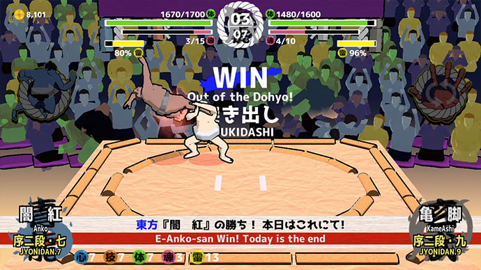 張り手で相手がフラフラしたり、逆にこちらが投げ飛ばされたり、どちらが勝つか最後まで気が抜けないね!