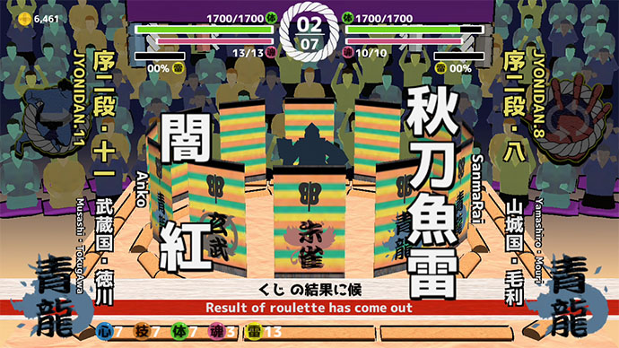自分の力士に名前をつけたり、賞金でステータスアップができるよ。