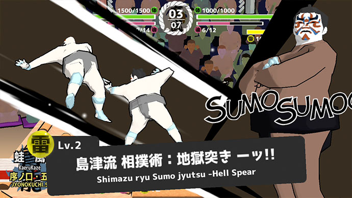 お相撲さんを操作して戦う、対戦格闘アクションだよ。