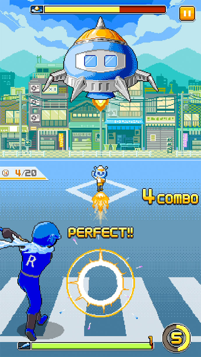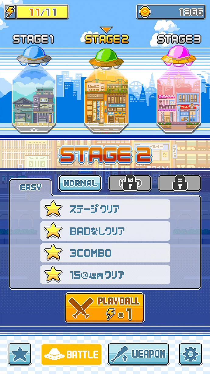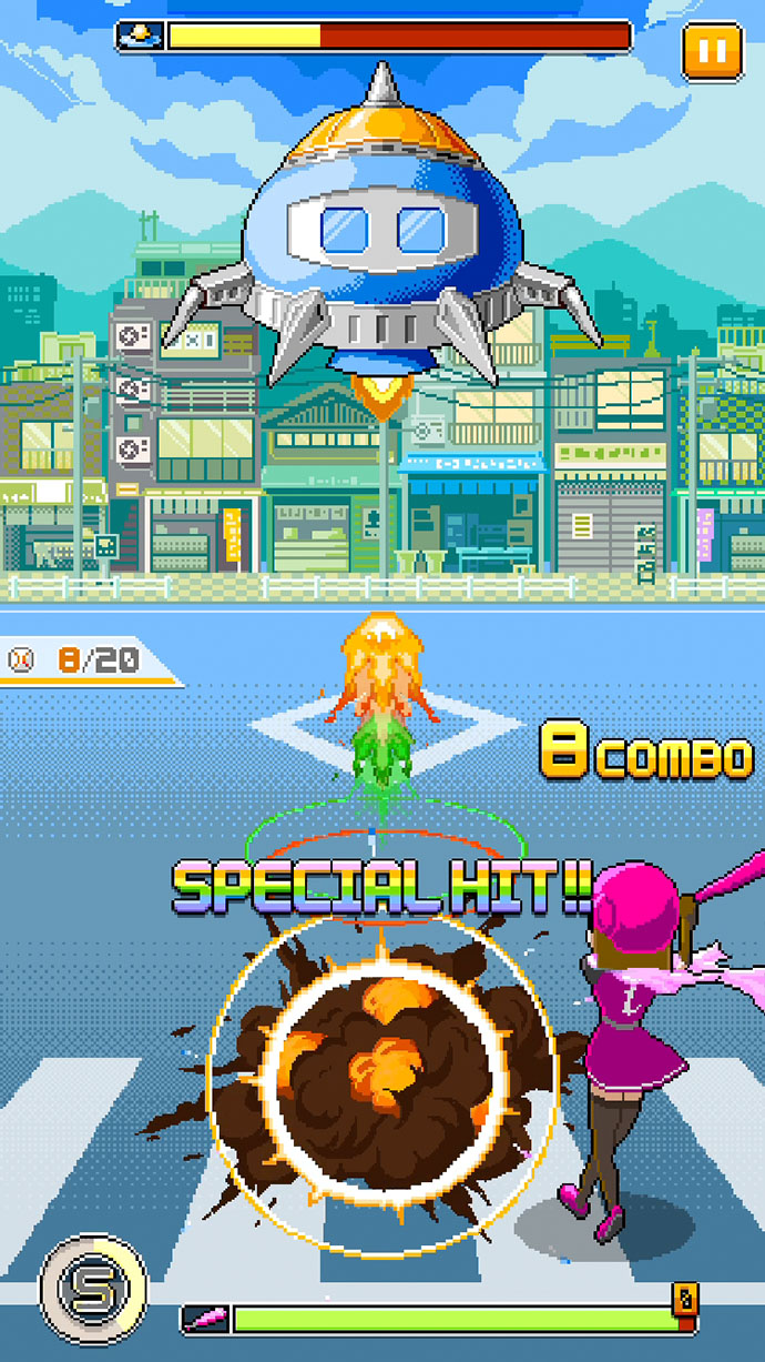 宇宙人が投げるボールを打ち返せ!爽快に打って侵略者の宇宙船を破壊するよ〜簡単に遊べて勝負が楽しい!緻密で美しいドット絵のバッティングゲーム「バッティングヒーロー」無料♪