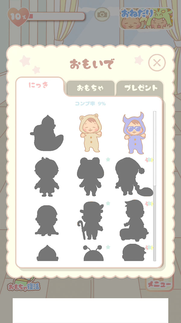 他にも「ねことも」と「お気に入り」を手に入れたら装備することで、能力値がぐんとアップするね!