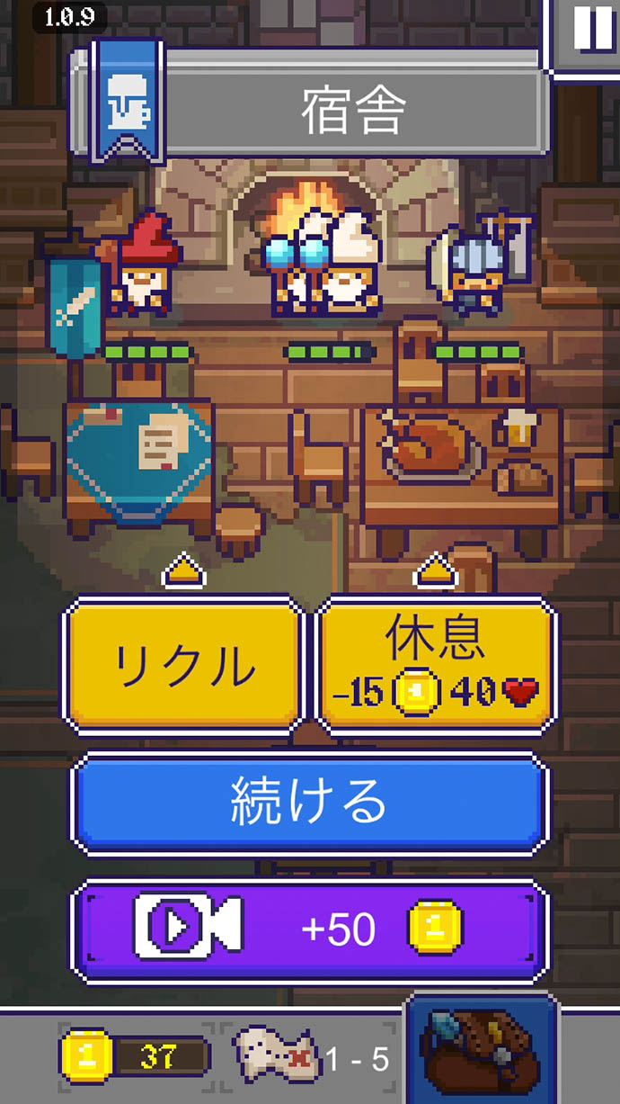 その代わり、旅に出る前や、ステージの途中の「休憩所」で戦士を雇ったり、「イベントステージ」で仲間が増えたりして、人数を増やせるよ!